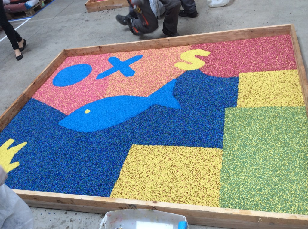 One of the great advantages of wetpour (pour-in-place) rubber surfacing is the potential for using designs with different colours and all kind of shapes and graphics.