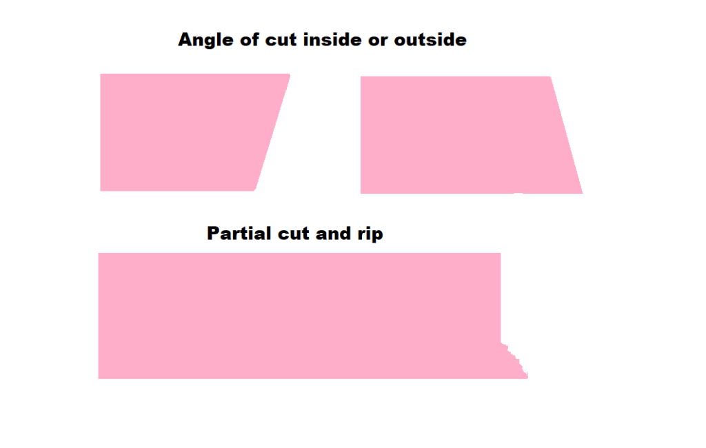 The kind of cutting is important to get a good overlap between the two colours. Some installers do the cut on an angle to inside or outside or in a step form and some do a partial cut, ripping the sliced part and allowing some rest of the first colour to keep attached to the base layer what will improve integration with the second colour avoiding at the same time the seam splitting.