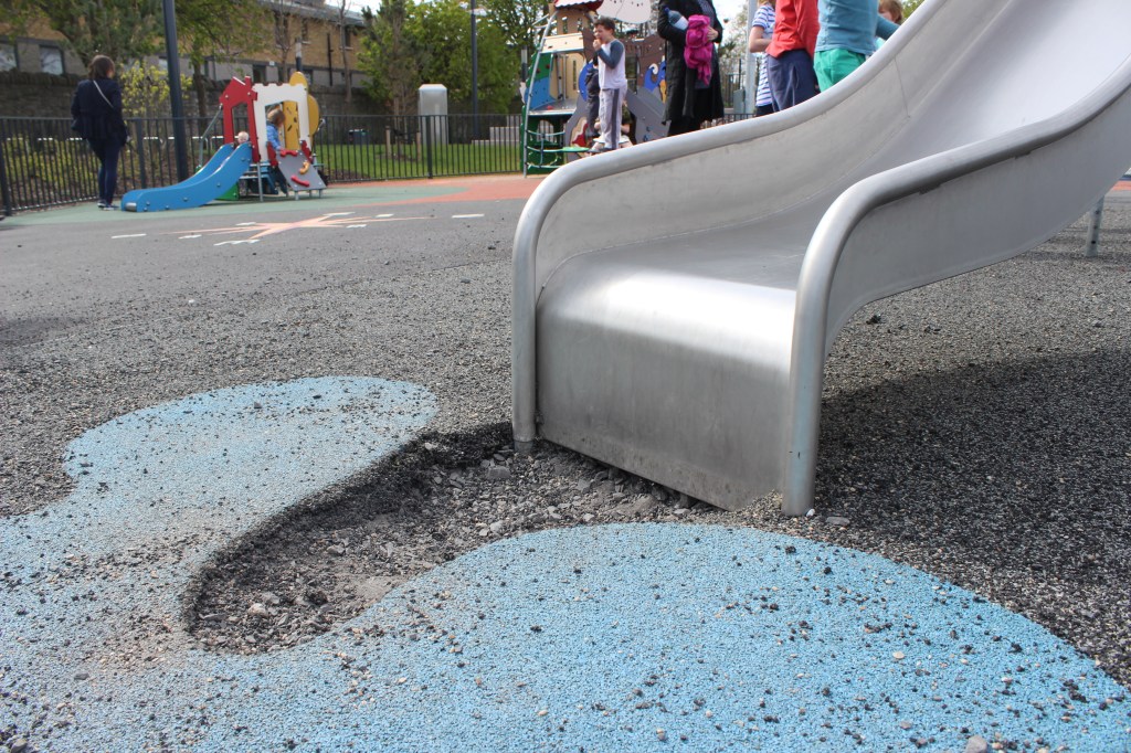 As this safety surfacing system expanded around the world and competition among installers of these surfaces increased, cost tensions started, and some installers began to reduce the top layer thicknesses to a final 12 or even 10 mm.