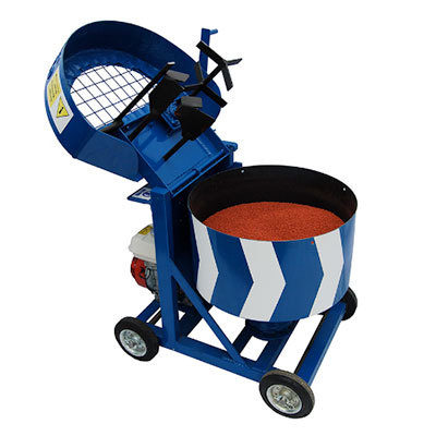 The machine to create the appropriate state of the mix of rubber and polyurethane is one of the main investments a safety surfacing installer needs to do to ensure good quality jobs. It’s important in terms of final results you can achieve and efficiency but also is one of the most expensive tools you will need to buy. And first of all forget it, never, ever use a cement mixer.