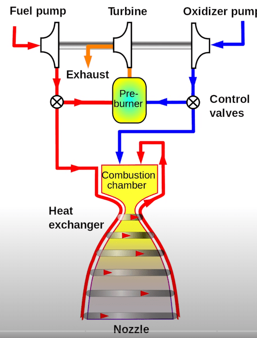 Drive a heavy load into an Earth orbit by means of a jet engine where the injection of a propellant mixture based on a high-pressure liquid fuel and a high-pressure liquid oxidant initially maintained at cryogenic temperatures to keep it liquid and optimize their density and then turbo pumped to end up on a combustion chamber where they are mixed in a sophisticated way to achieve an efficient combustion with very high temperature, that all the components must withstand without shrinking, sounds very difficult. If you disagree look below at the simplified block schemes of such full of pipes rocket engine.