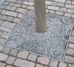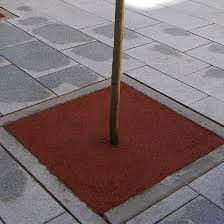 One of the most interesting solutions is the use of bonded granulated recycled rubber or rubber mulch, either in a single layer of the thickness necessary to complete full depth of the tree pit or with two layers using a base of SBR recycled from tires, all on a sub-base of aggregates, also bonded with polyurethane binder and sometimes with a previous geo-textile layer below the aggregates to avoid weeds.