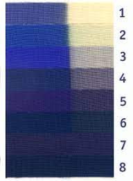 A rating between 0 and 8 is awarded by identifying which one of the eight strips on the blue wool standard card has faded on the same extent as the sample under test.