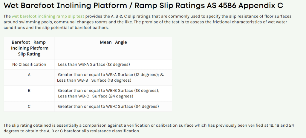 From https://www.floorsliptest.com.au/as-4586-2013-slip-ratings/